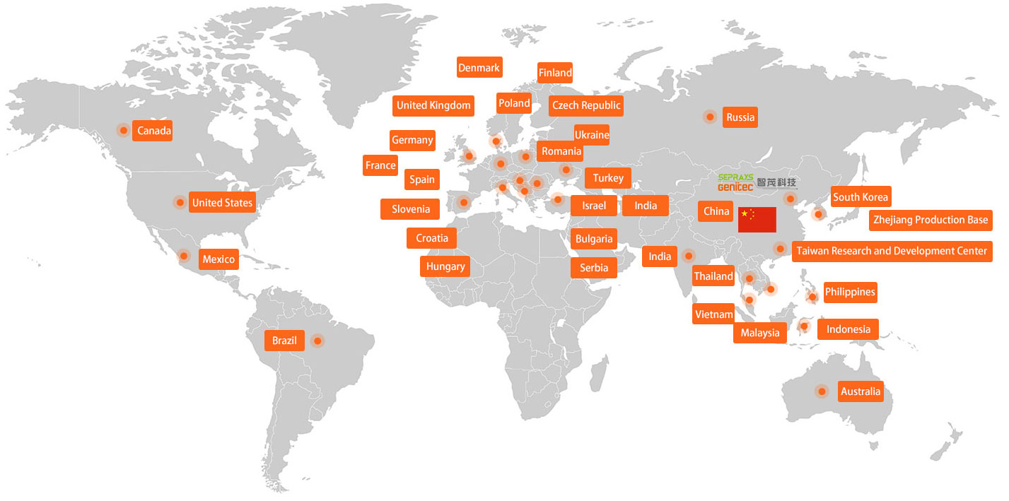 Seprays/Genitec was founded in Taiwan in 1993 as a research and development center. In 2002, it established a branch in Dongguan, which became a subsidiary in 2013, handling global sales and technical training. In 2003, a 20,000㎡ industrial plant for equipment production was built on land purchased in Zhejiang.